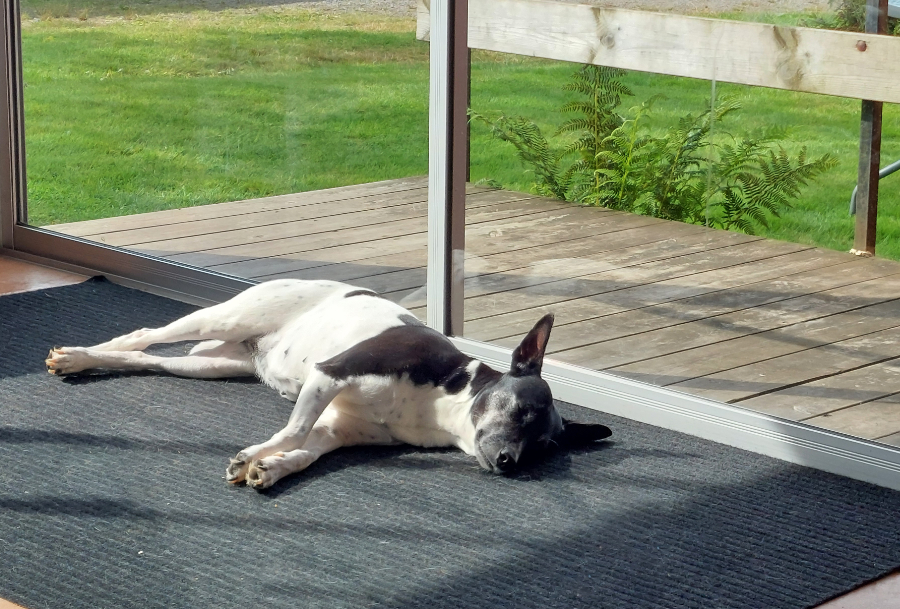 Wenn du Hunde magst und Lust hast, lassen wir unsere Hunde auf dem Hof frei laufen – dann kommen sie vielleicht manchmal zu dir.