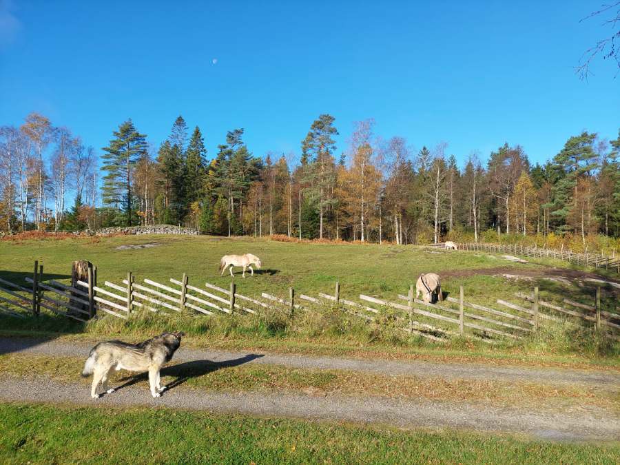 Auf unseren Weiden leben viele Pferde der Nachbarn – sie beim Spielen und Grasen zu beobachten ist Entspannung pur.